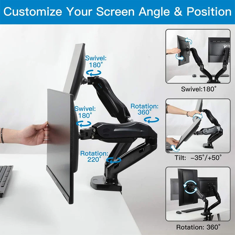 تحقیقات نشان میدهد که کار با دو یا چند مانیتور باعث بهبود بهرهوری و کارایی میشود و احتمال خطاها را کاهش میدهد. در صورتیکه به دنبال راه حل ارگونومیک برای نگه داشتن چندین مانیتور هستید، پایه رومیزی مانیتور ergo به شما کمک خواهد کرد. پایه مانیتور ارگو به گونهای طراحی شده است که متناسب با نیاز کاربر میتوان ارتفاع، زاویه و ... آن را تنظیم کرد. بازوی نگهدارنده دوقلو مانیتور یکی از پرکاربردترین و یکی پرفروشترین بازوهای نگهدارنده مانیتور است. این استند دارای سیستم بالابر گازی منحصر به فردی است که آن را به یکی از با دوامترین بازوهای مانیتور موجود در بازار تبدیل کرده است. استند مدل WLA004 همانند سایر بازوهای نگهدارنده این ERGO از بالاترین کیفیت مواد ساخته شده که طراحی زیبا و ارگونومیک آن ترکیبی منحصر به فرد از کارایی و زیبایی ارائه میدهد. از مزایای اصلی پایه نگهدارنده رومیزی دو تایی ERGO مدل WLA004 طراحی ارگونومیک آن است که منجر به افزایش بهرهوری و کارایی، تثبیت موقعیت قرارگیری مانیتورها بدون رانش و افتادگی است.