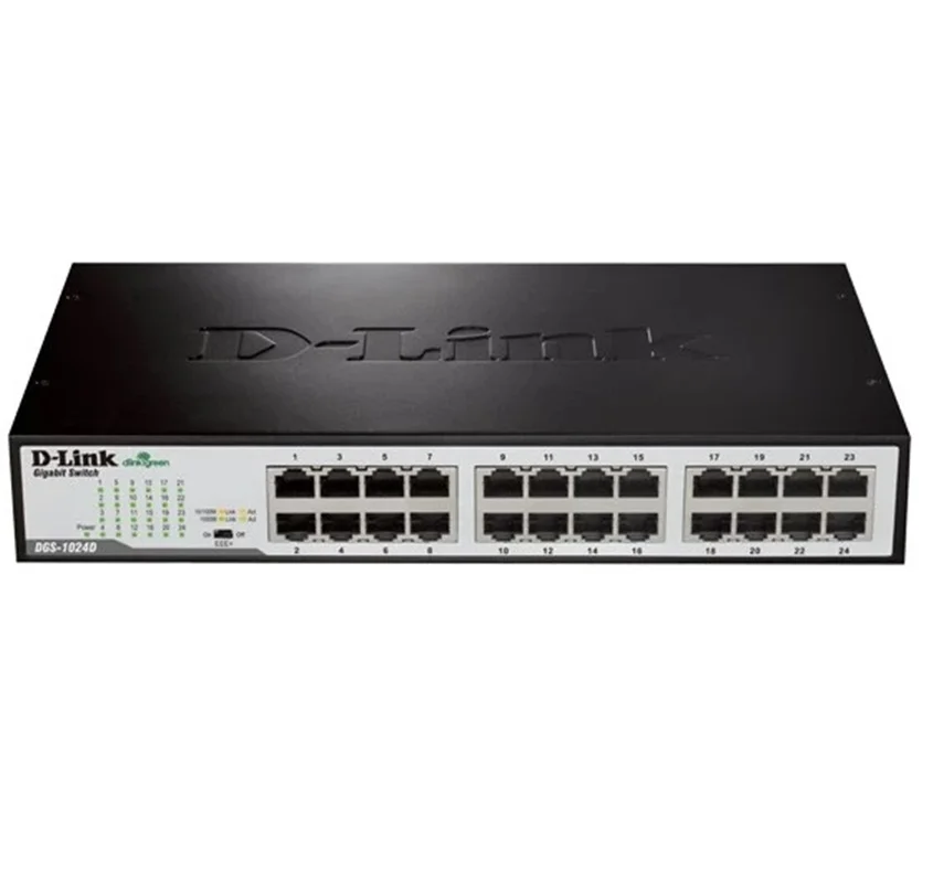 • DGS-1024D ، به صورت خودکار انرژی را حفظ می کند. • سرعت و امنیت زیاد • طراحی زیبا و بدون فن برای حذف صداهای اضافی • دارای نور LED برای Per device : Power , Per port : Link/Speed/Activity • دارای پروتکل CSMA/CD • دارای 24 پورت Gigabit