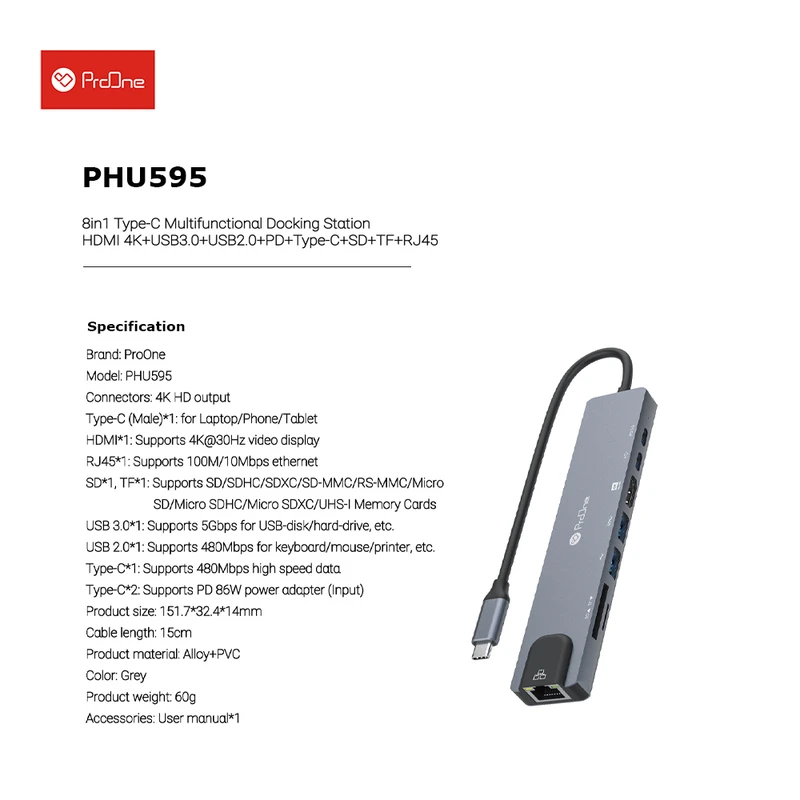 داشتن یک هاب باکیفیت میتواند کمک بسزایی در انجام امور به شما برساند. هاب پرووان مدل PHU595 یک هاب با 8 خروجی مفید است.این مدل دارای طراحی زیبا و کیفیت بالا است. همچنین کابل نایلونی بافته شده و اتصال بدون قطعی از دیگر مزیتهای این هاب هستند. می توانید از این هاب برای پخش تصاویر / فیلم های با کیفیت بالا اتصال دستگاه های جانبی به گوشی همراه،لپ تاب یا تلویزیون و شارژ همزمان لپ تاپ استفاده کنید. این هاب قابلیت انتقال اطلاعات،اتصال موس و کیبورد، پخش فیلم ها و تصاویر از طریق گوشی همراه به لپ تاب ، تلویزیون و پرژکتور را دارد. همچنین دارای 15 سانتی متر کابل می باشد.
