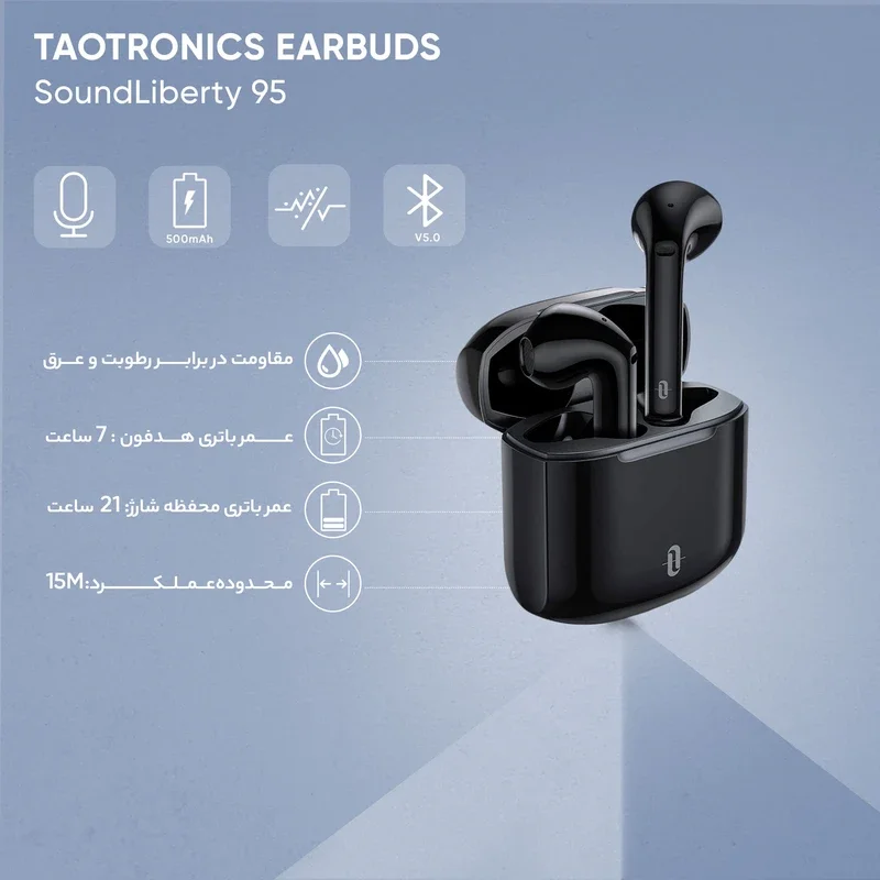 هدفونهای بیسیم طرفداران بسیاری در بین کاربارن دارند اما برای اینکه عملکرد خوبی را از این محصولات شاهد باشید، باید معیارهای مهمی در خرید در نظر بگیرید. برند تائوترونیکس هم در این بخش عملکرد قابل قبولی داشته که هدفون بیسیم SoundLiberty 95 هم یکی از محصولات باکیفیت این برند است. در نگاه اول طراحی در نظر گرفته شده برای SoundLiberty 95 ما را به یاد هدفونهای بیسیم شرکت اپل میاندازد. طراحی مناسب این هدفون سبب شده تا بهخوبی درون گوش قرار گیرد و از طرفی در حین راه رفتن و یا حتی دویدن هم بهراحتی از گوش خارج نشود. ابعاد مناسب و وزن سبک گوشیهای این هدفون سبب شده تا در استفاده طولانی مدت هیچ خستگی برای گوش بههمراه نداشته باشد. هدفون SoundLiberty 95 از بلوتوث نسخه 5.0 هم پشتیبانی میکند که توانایی پوشش 15 متری را دارد. یکی از قابلیتهای جذاب و البته کاربردی در نظر گرفته شده برای این هدفون بیسیم، نویز کنسلینگ است که این قابلیت سبب خواهد شد تا نویزهای موجود در محیط تا میزان قابل توجهی کاهش پیدا کند و در نهایت خروجی صدای بهتری را شاهد خواهید بود.